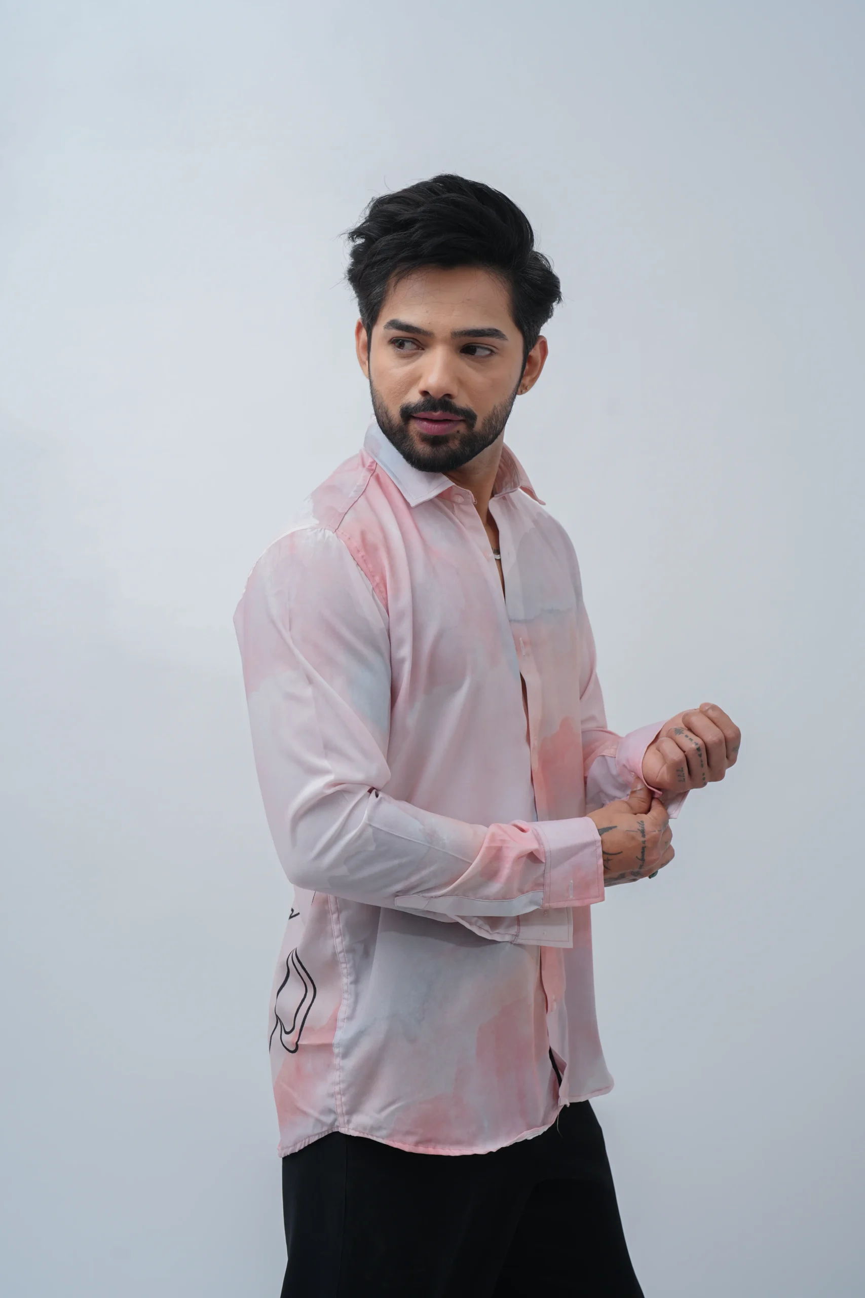 This shirt features a soft pastel tie-dye base with a bold abstract face line artwork printed across the back. The minimal front keeps the look clean while the artistic back design adds a distinctive modern edge. Lightweight breathable fabric makes it comfortable for everyday wear and contemporary styling.