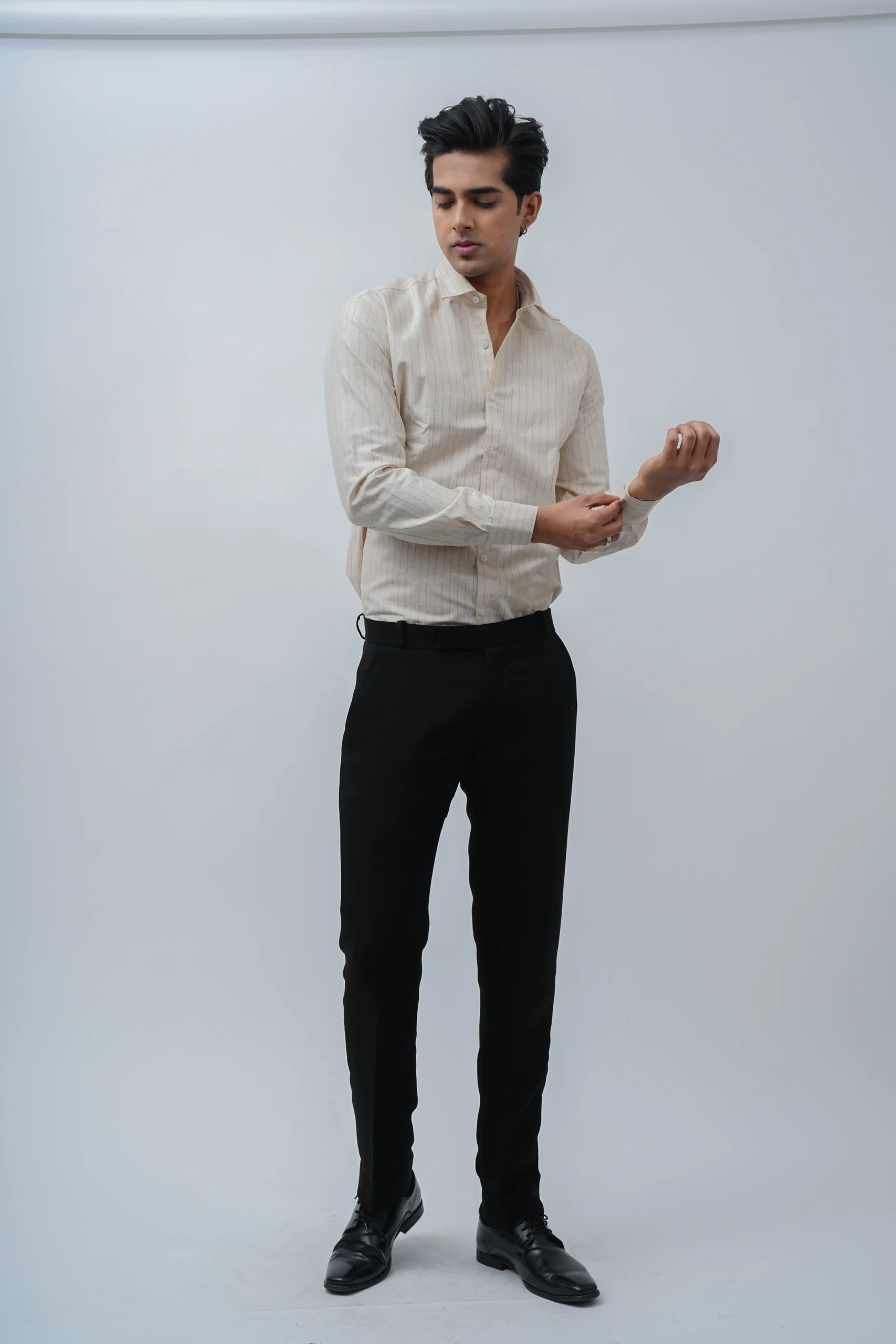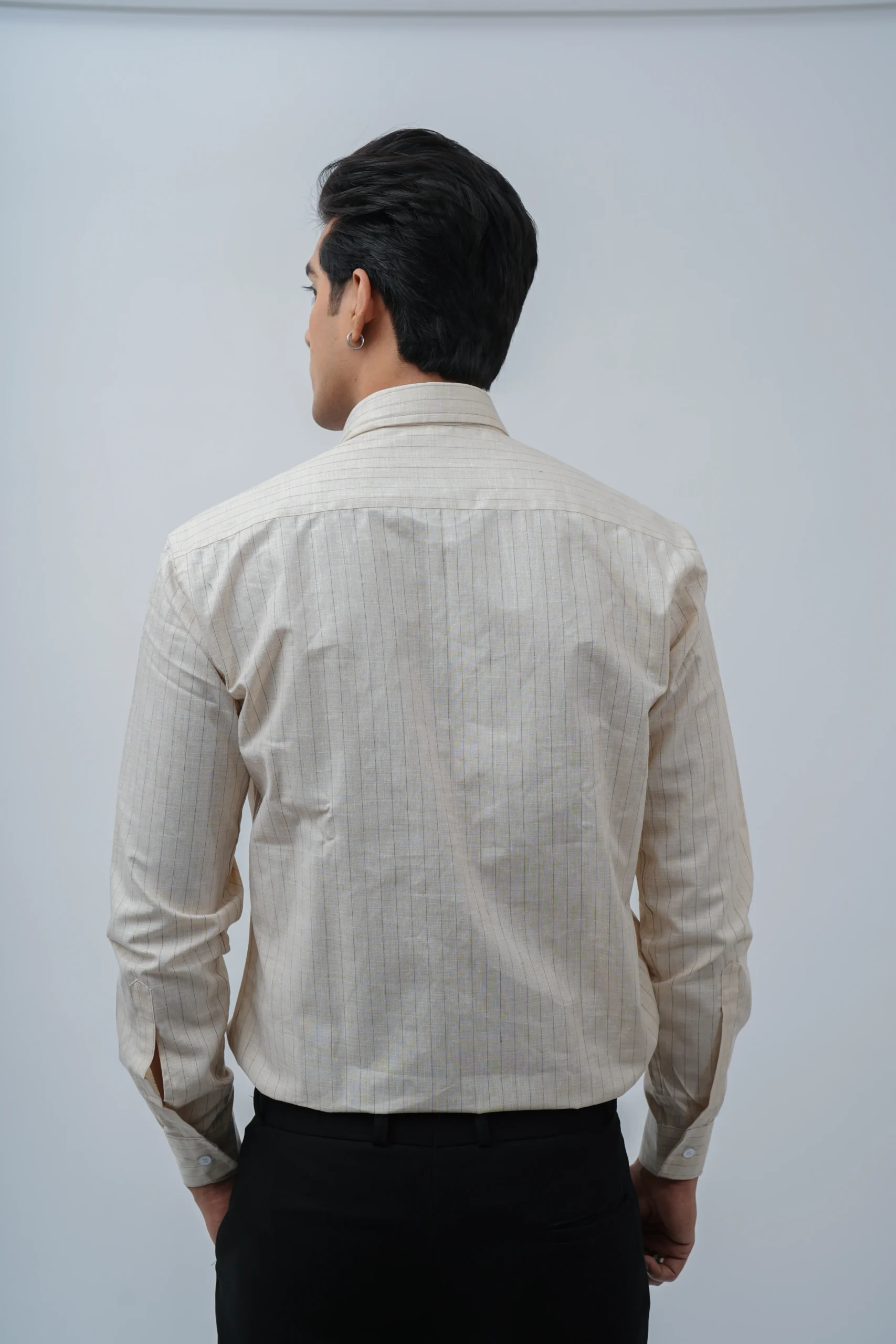 Classic Beige Pinstripe Cotton Shirt
