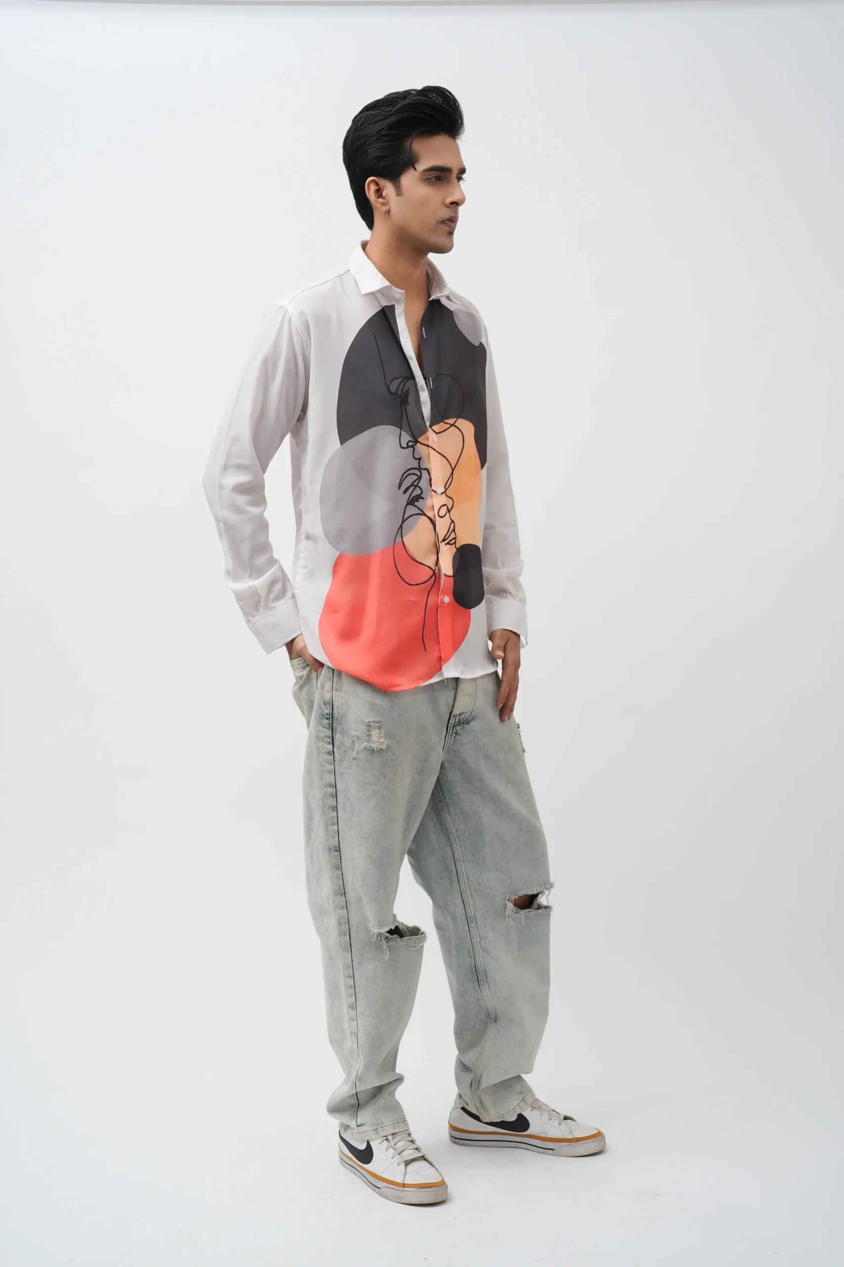 Men’s White Color Seiche Designer Abstract White Shirt